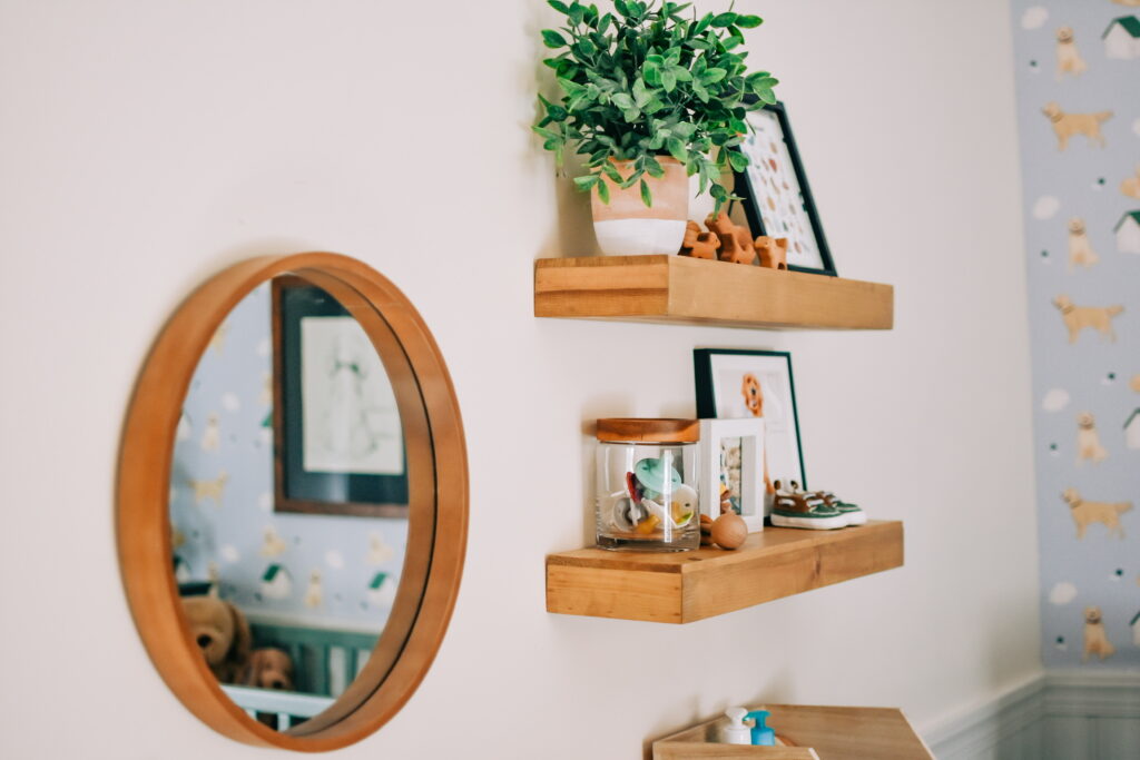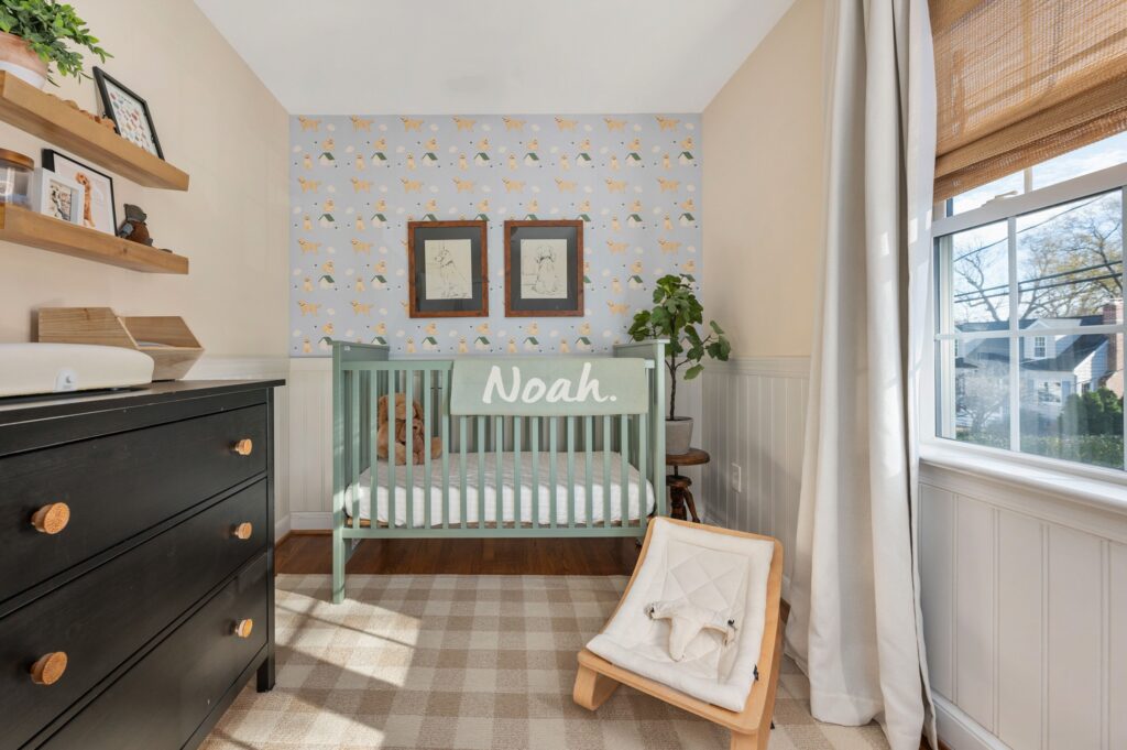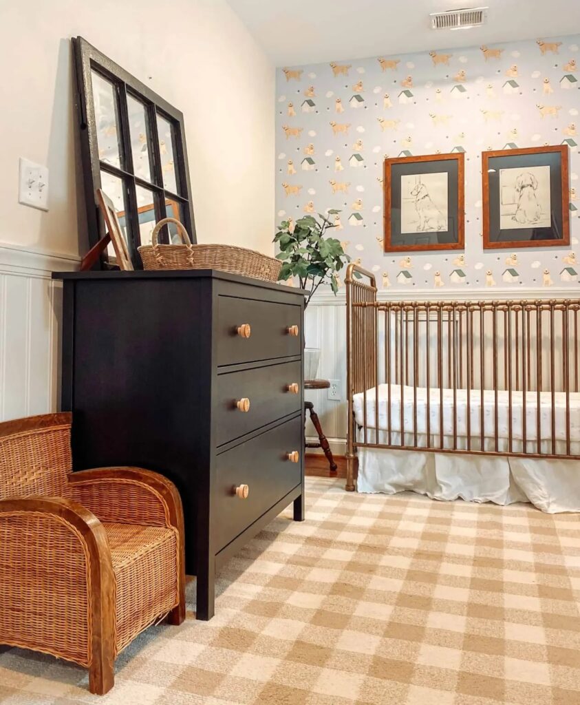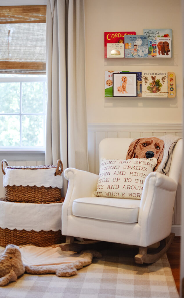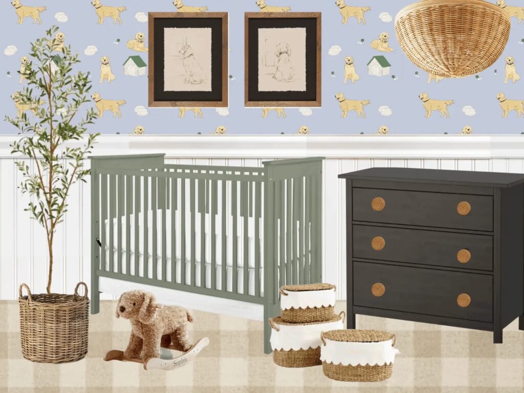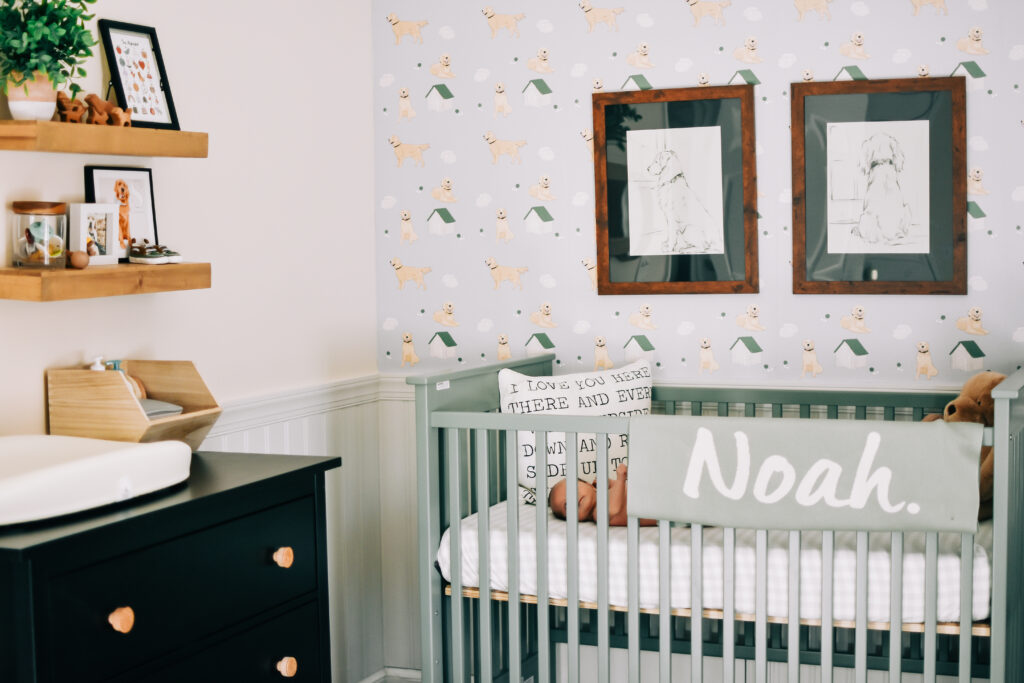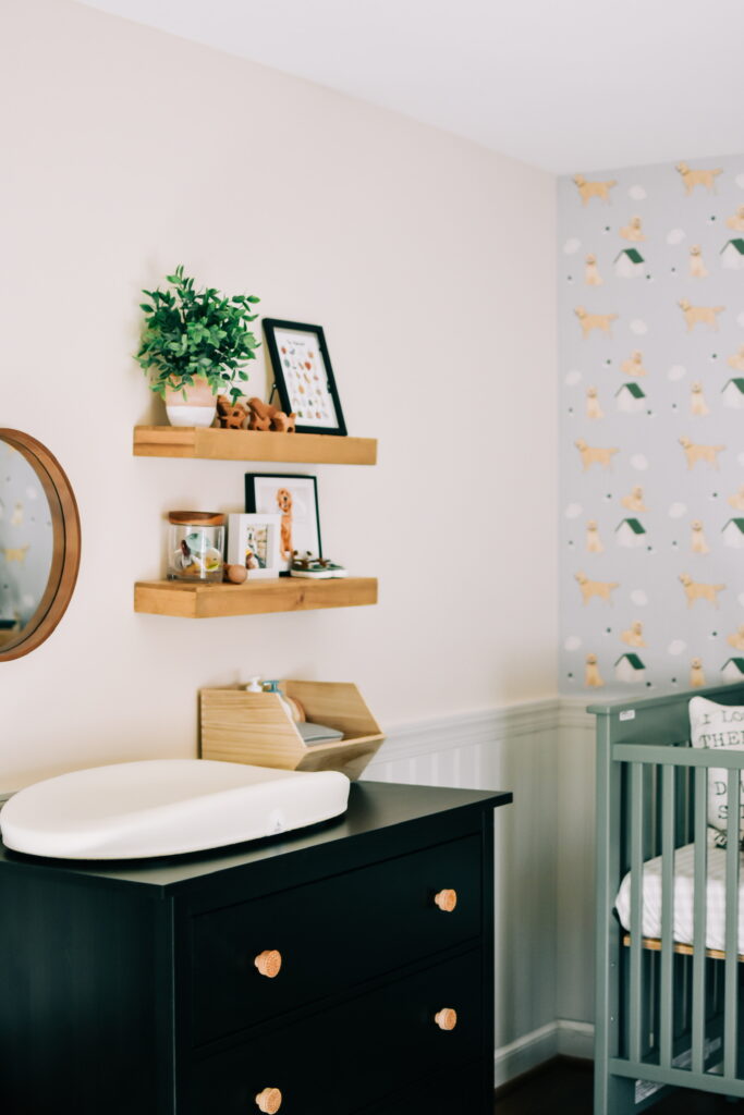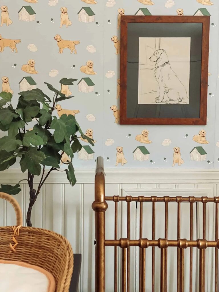 Those who know me well, know my total obsession with our first baby, our golden retriever Sadie. When I came across this adorable golden retriever wallpaper, I just knew I had to make that the theme of our son’s room and built my entire design around the paper. This shop has the most darling kids decor – so glad I stumbled upon them and highly recommend checking them out!