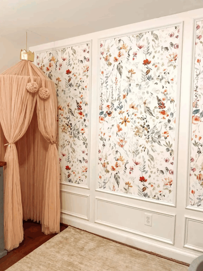 I’ve been diligently working on transforming Kennedy’s bedroom and playroom into one cohesive space, and I couldn’t be more thrilled with the progress I’ve made. Witnessing my design visions come alive is truly gratifying, especially when it comes to creating magical spaces for children. Drawing inspiration from her nursery, I centered the room’s design around a captivating whimsical wallpaper.