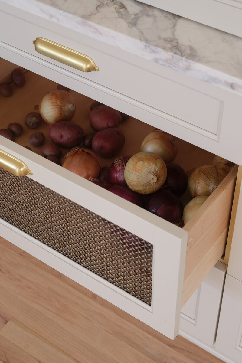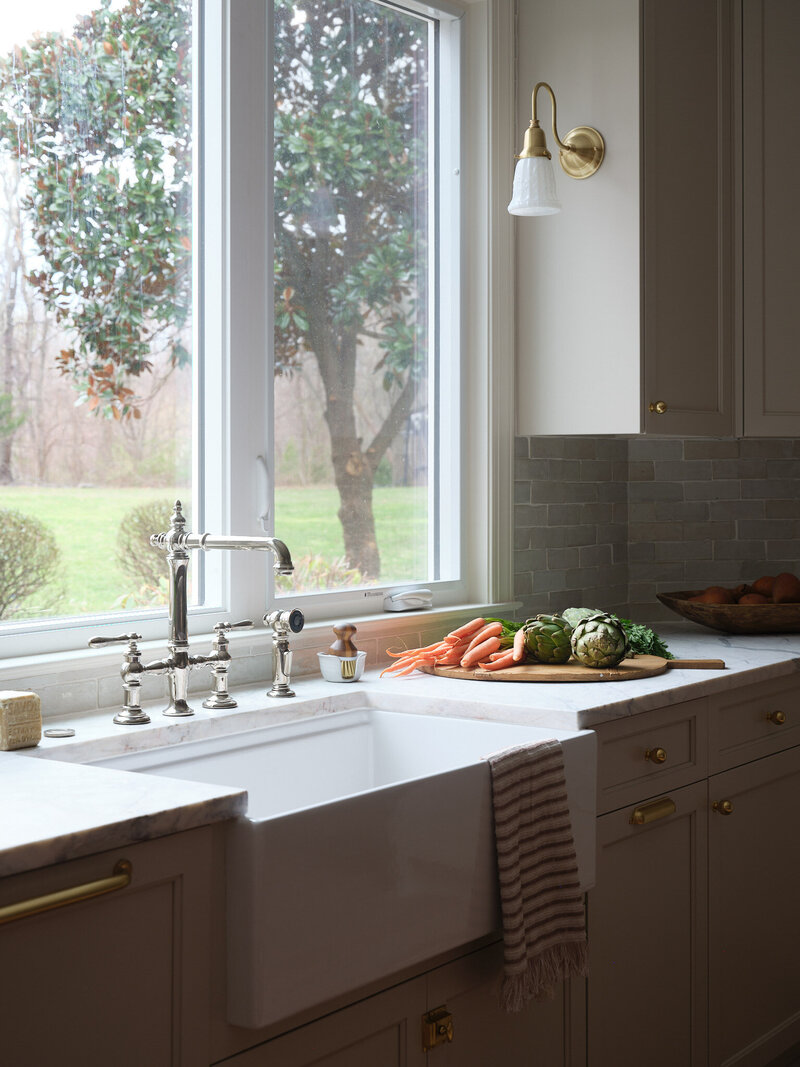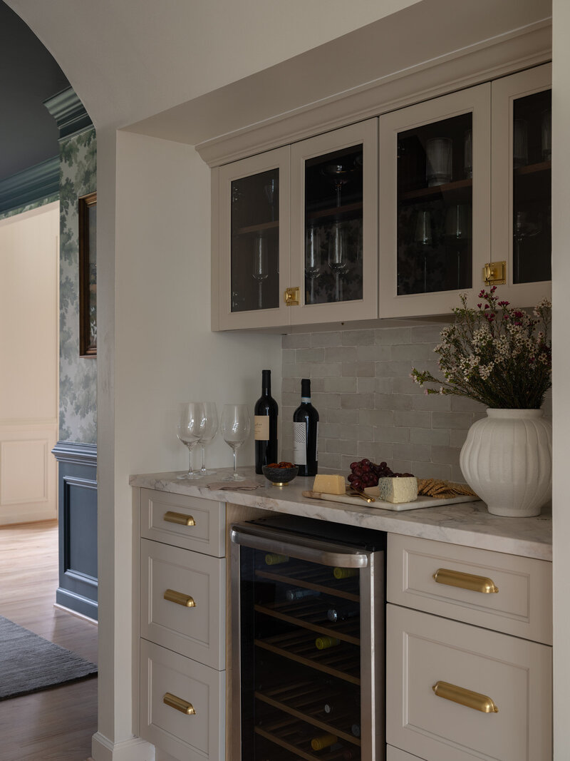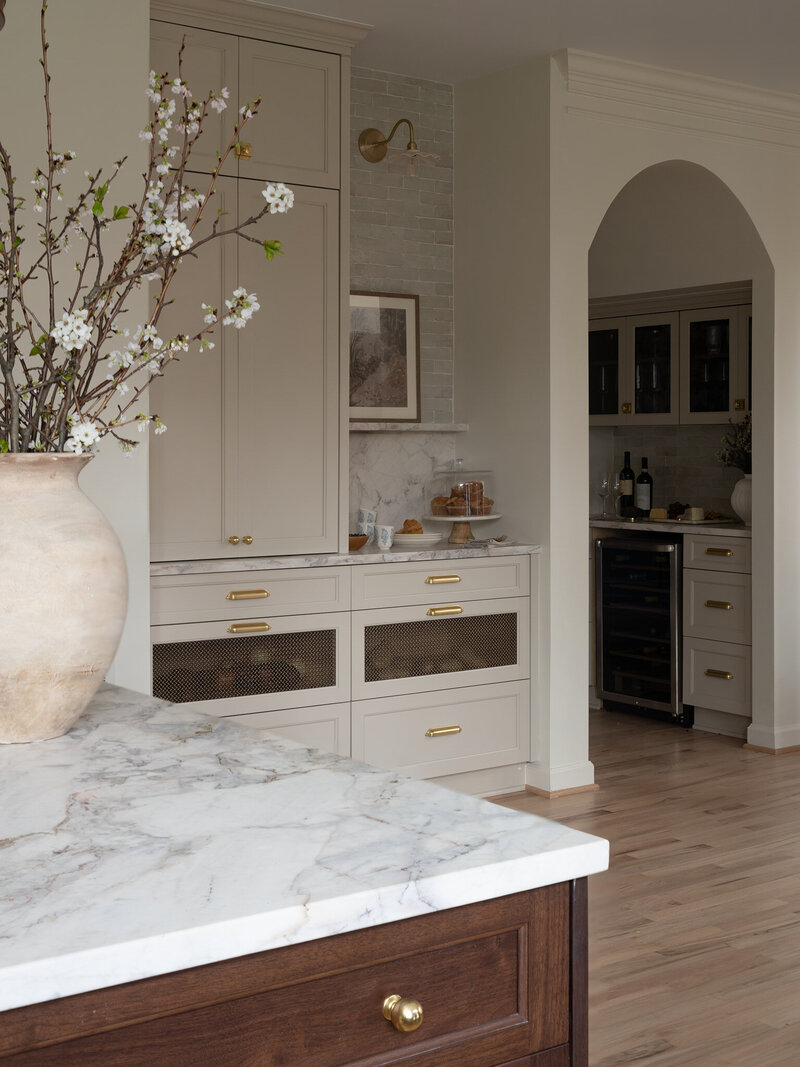 Located in Aldie Virginia, our Sousa Place kitchen project channels a Nancy Meyers-inspired sense of charm — layered and classic with rich walnut accents and a statement alcove hood as its centerpiece.