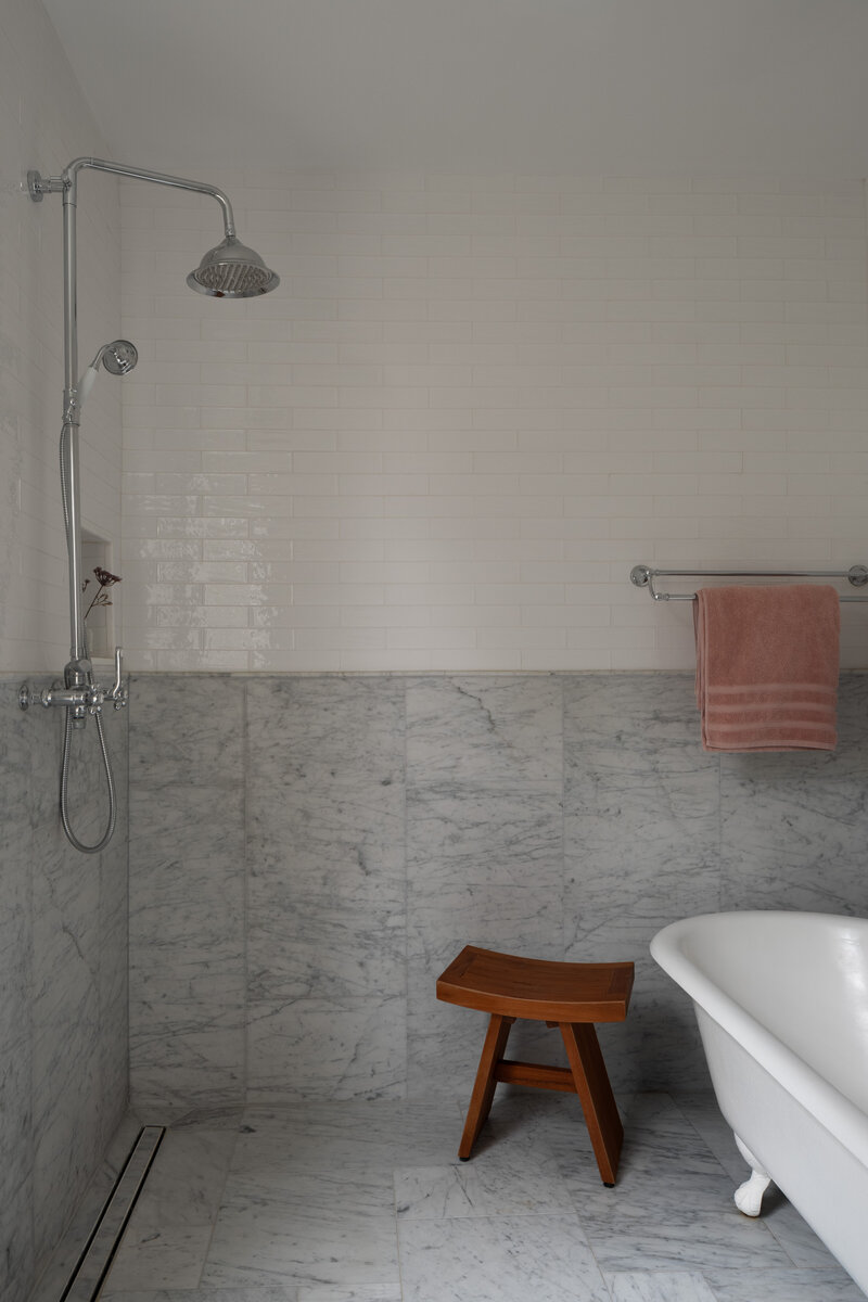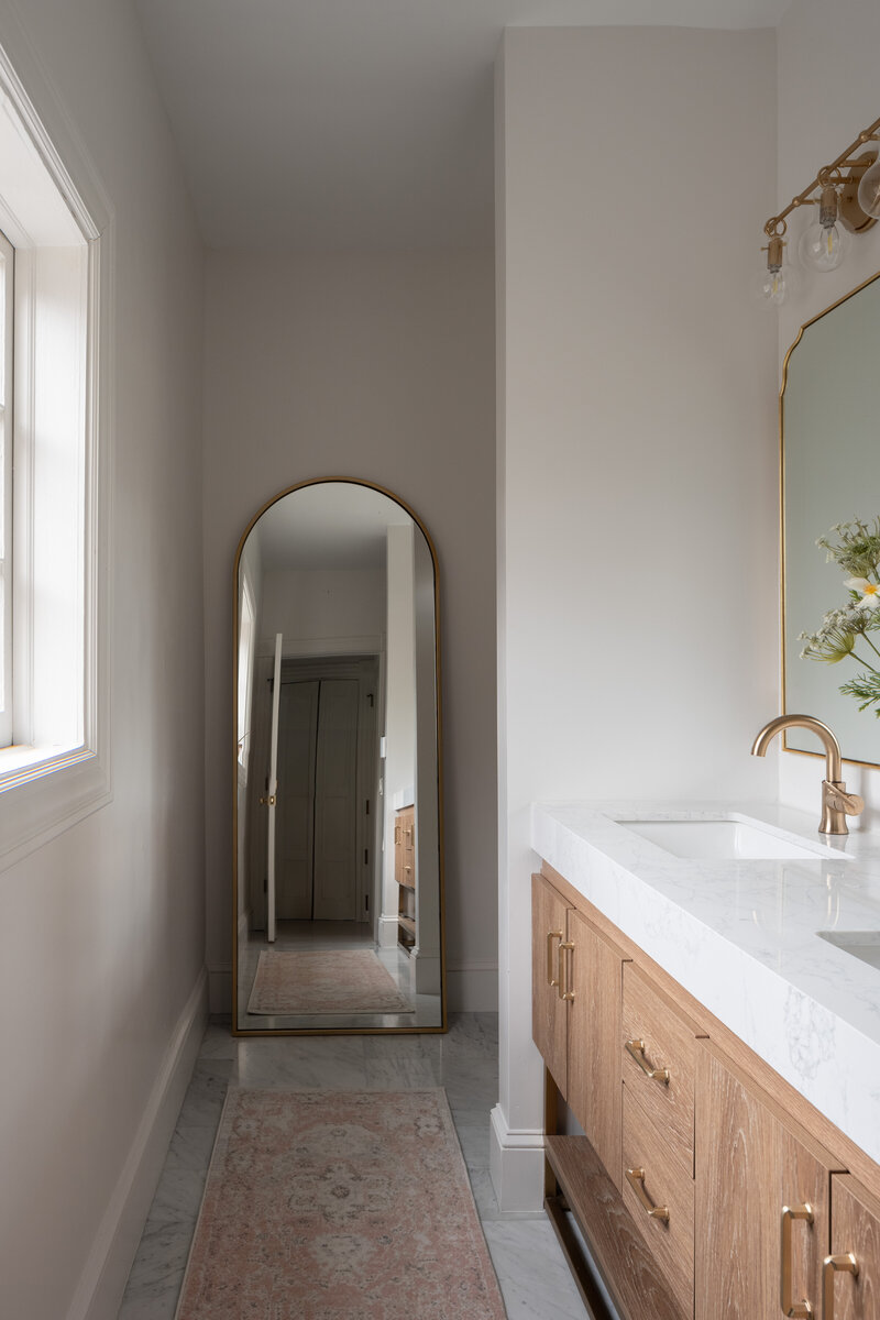 Set in Arlington’s sought-after Westover neighborhood, our Victorian Restoration revives a 19th-century farmhouse with storybook charm — preserving original heart pine floors, exposed beams, and historic arches while layering in thoughtful updates like custom tilework, curated wallpaper, and modern millwork throughout.